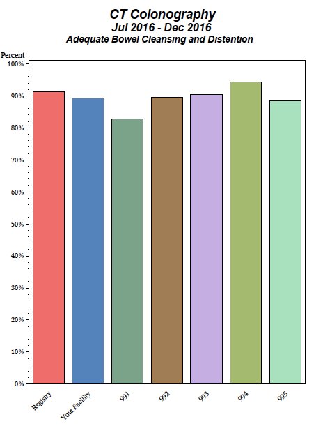 A series of bar graphs, one per CTC measure, provides a clear comparison of each physician’s results compared to your facility and the registry.