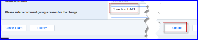 4. Enter something in the comment field at the bottom of the form. Then click Update:
